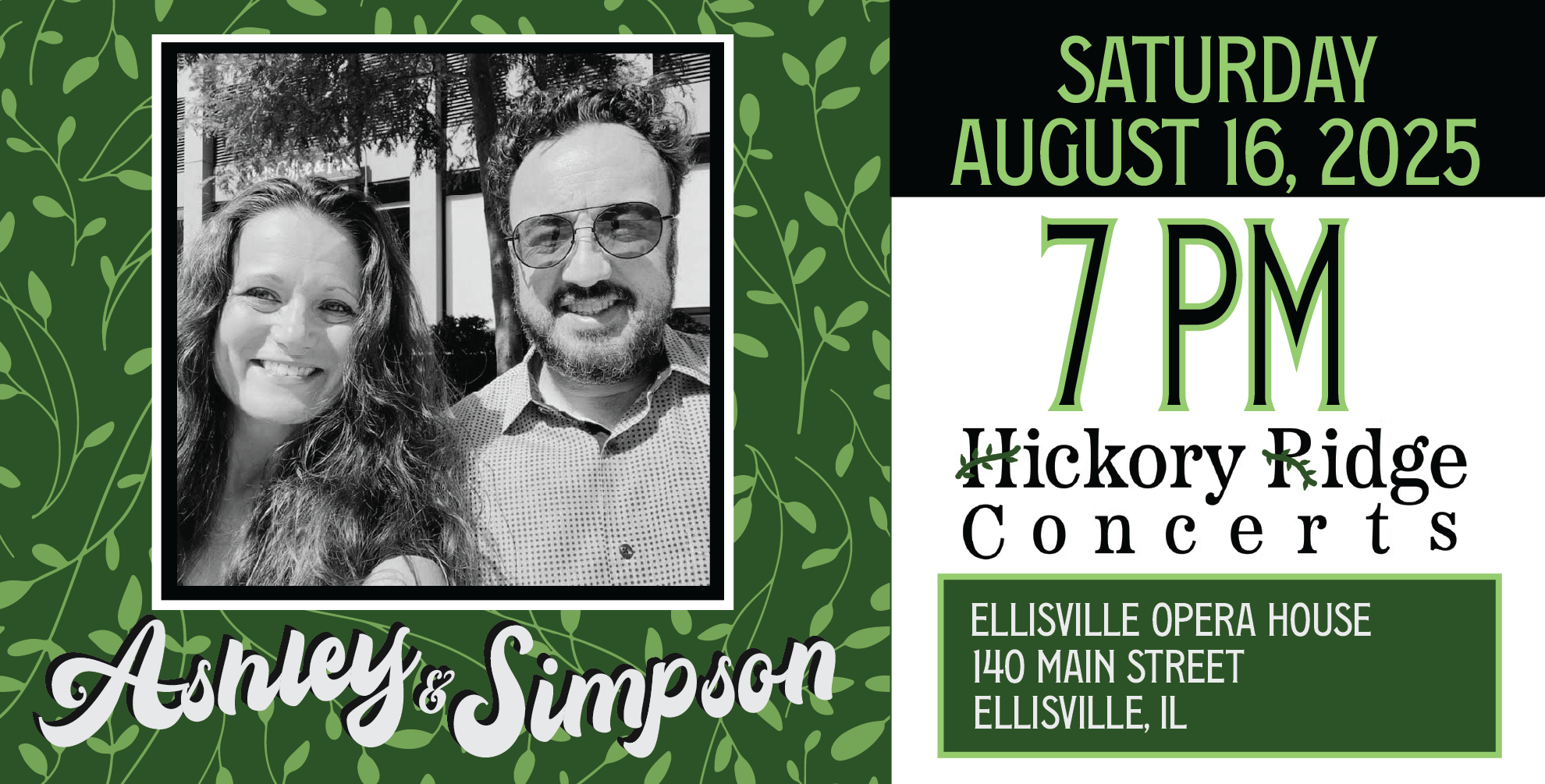 August 16 @ 7:00 pm - 9:00 pm Ashley & Simpson at Hickory Ridge Concerts Hickory Ridge Concerts 140 Main Street, Ellisville, IL, United States